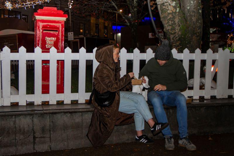 Couple with snacks and chat at Galway Christmas Market