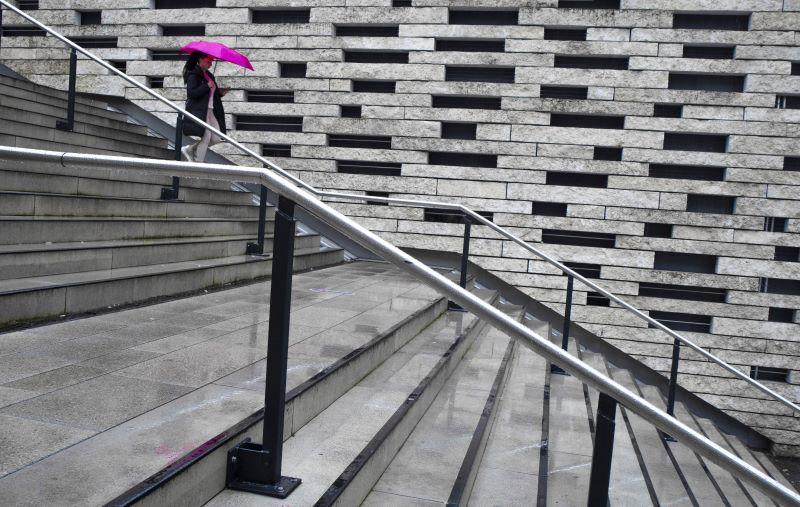Lady with umbrella on steps